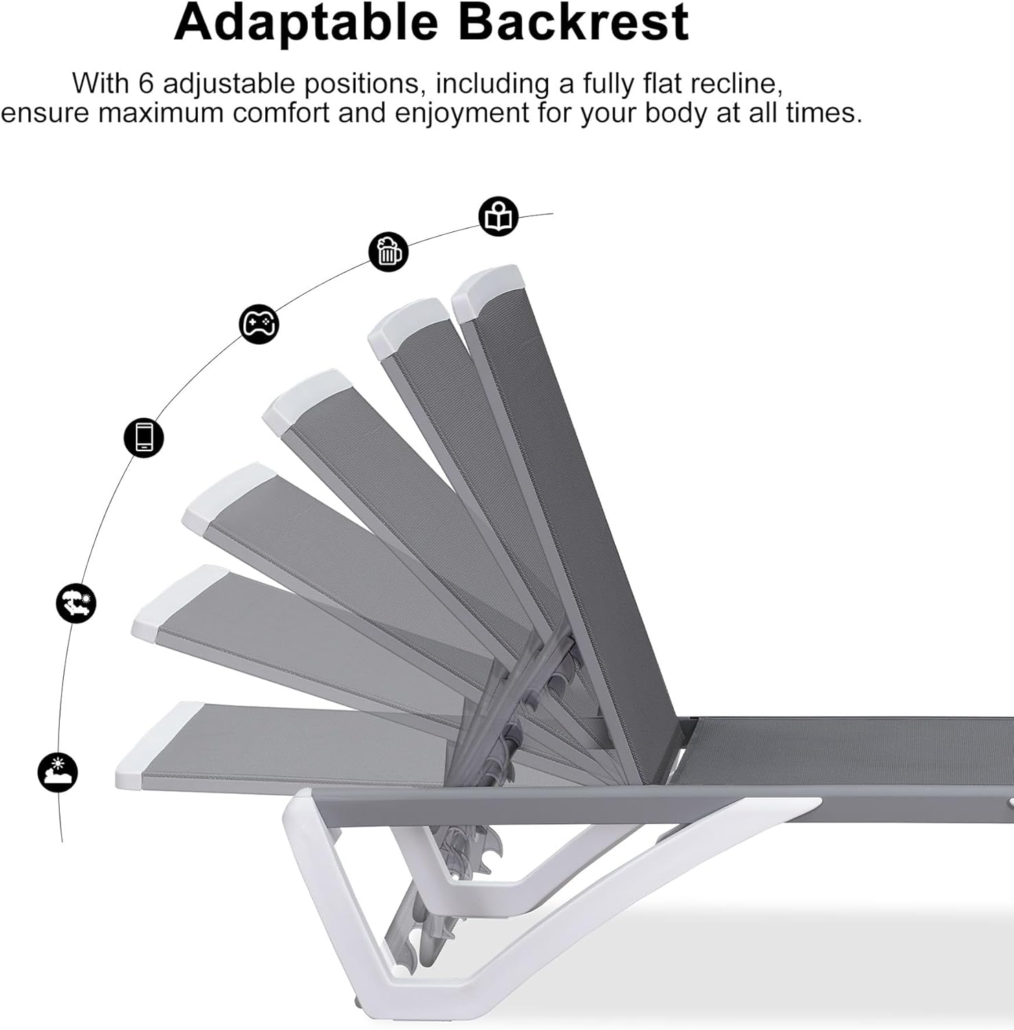 - With rust-resistant and non-deforming aluminum support rods and 6 adjustable positions, you can easily find your desired angle, including laying flat.