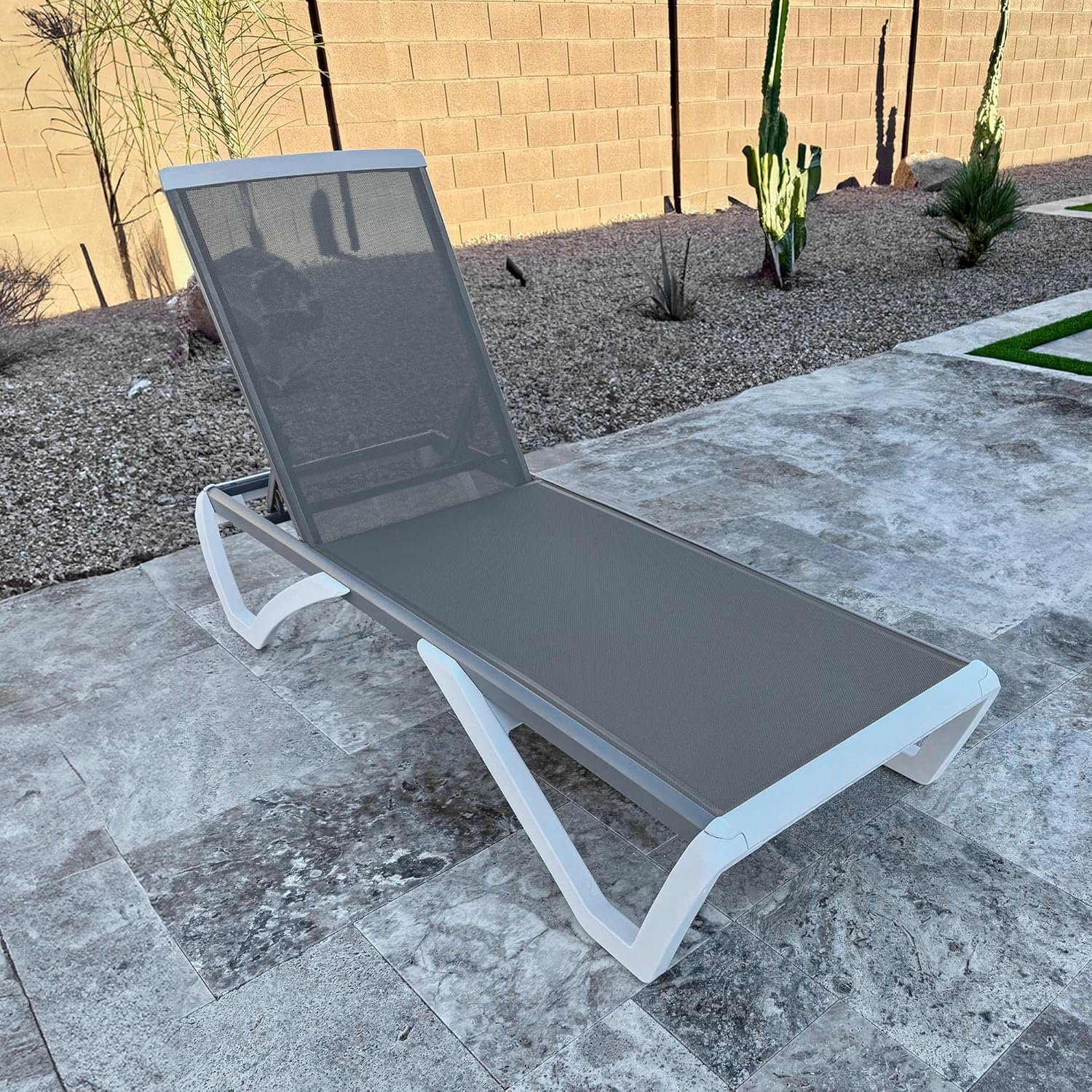 PURPLE LEAF Patio Chaise Lounge Chair Outside Aluminum Plastic Stackable Tanning Chairs for Pool Sunbathing Beach Deck Outdoor Lounger, Grey