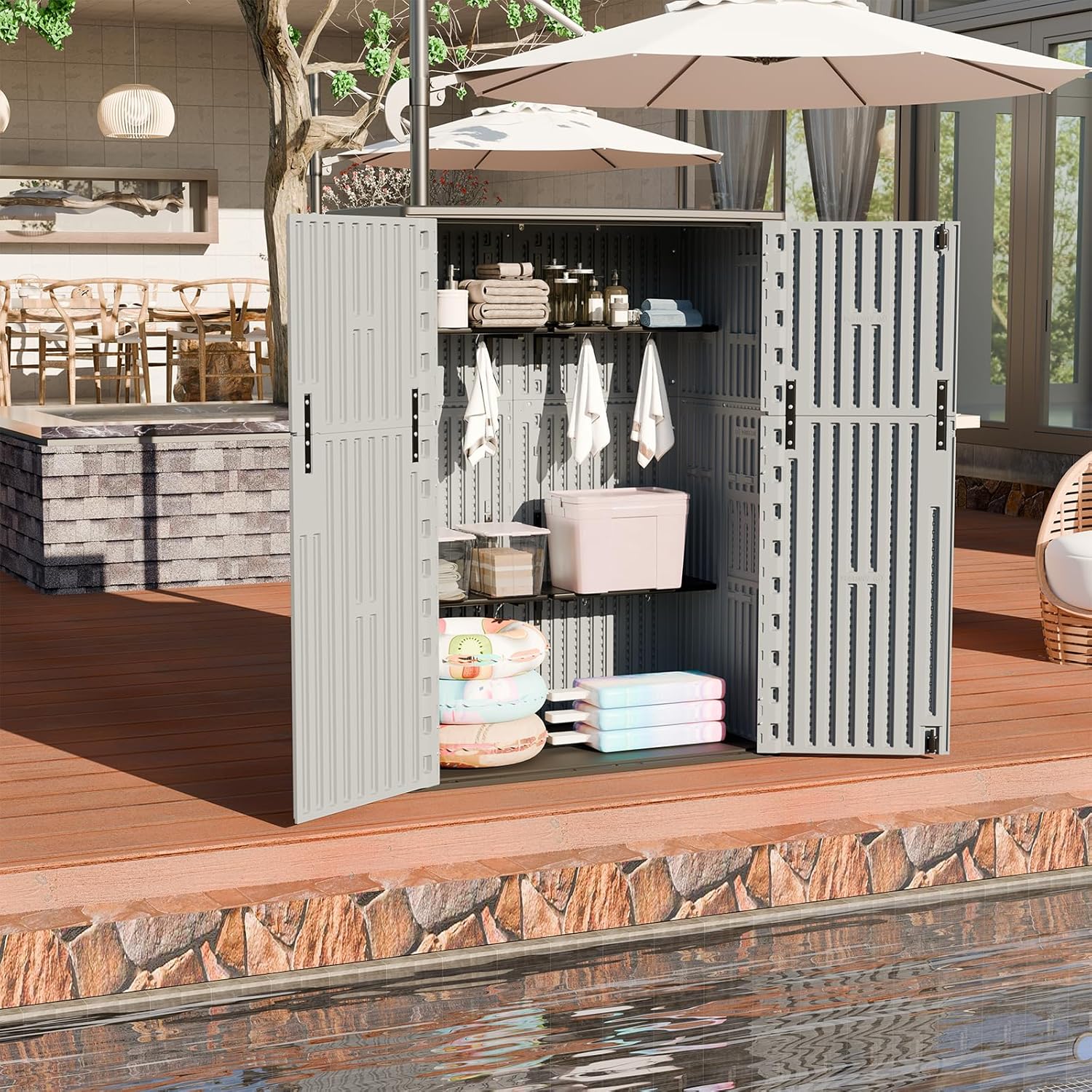 - 【Multi scenario application】This cabinet can be used both indoors and outdoors, providing you with the most convenient, safe, and reliable storage space whether placed on the balcony, garden, doorstep, or by the pool. Due to the double reinforcement of the material, its durability is greatly improved, and it is generally not a problem to use for 10 years.