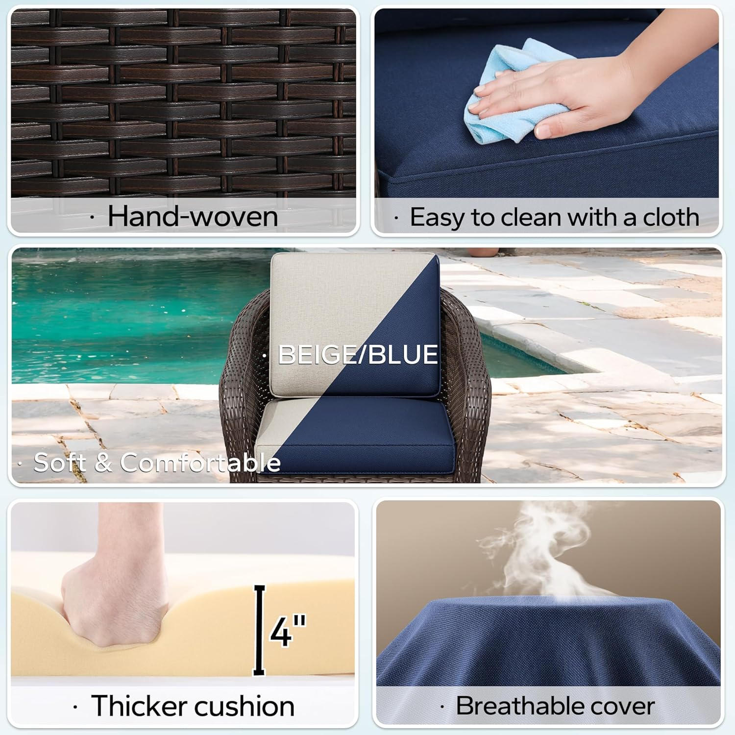 - Sturdy and Durable: The outdoor furniture set is made of steel frame and PE wicker, ensuring that it will be more sturdy. Fade-resistant fabrics of cushions is stain & fade resistance, tear & wear resistance