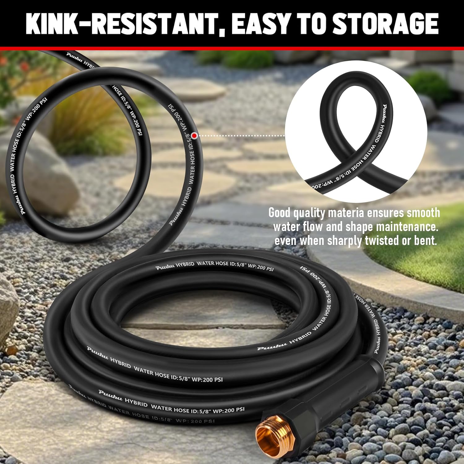 - Kink-Resistant & High Water Flow: Featuring anti-kink helical reinforcement, this heavy-duty hose withstands up to 600 PSI burst pressure / 200 PSI working pressure. The 5/8" standard diameter delivers high water flow, making it ideal for gardens, roofs, and large yards—saving time compared to standard water hoses for outside.