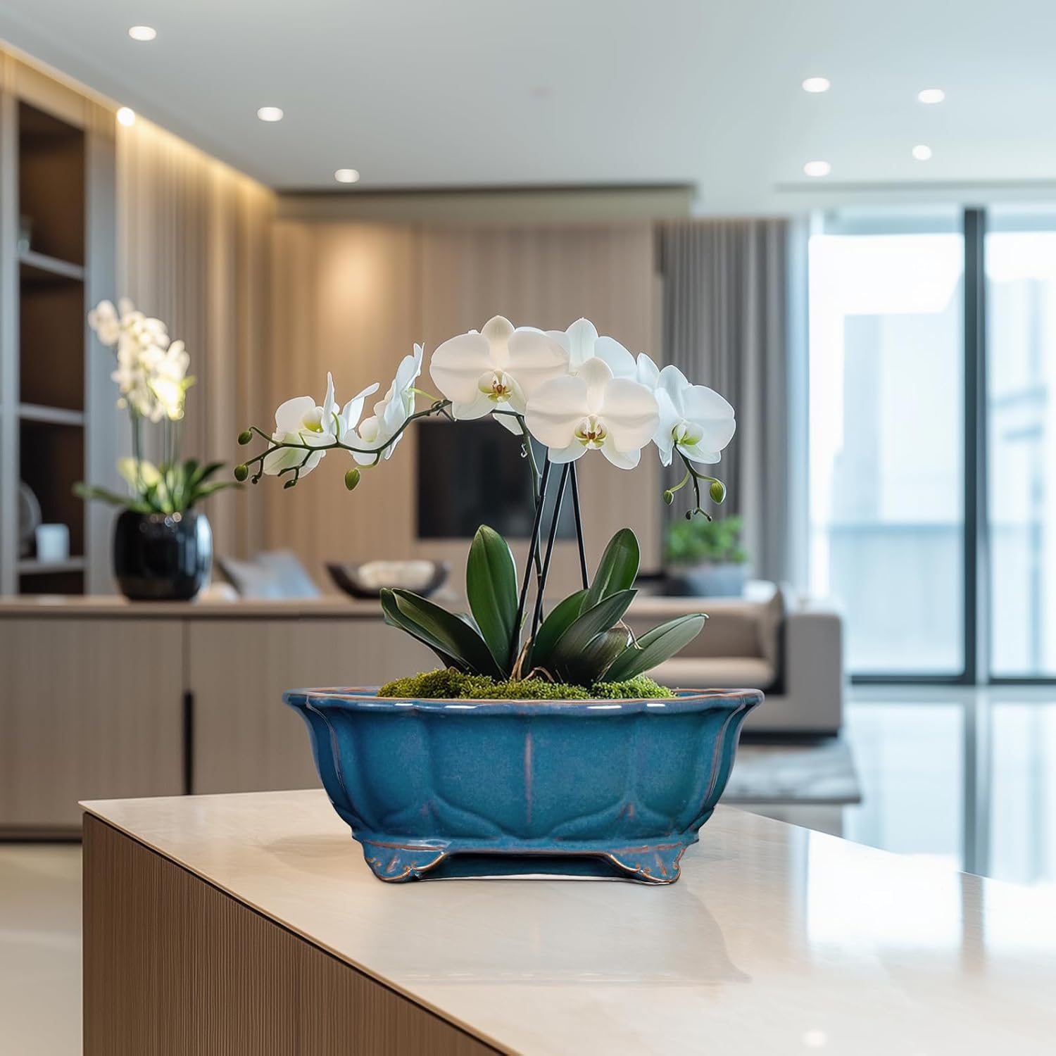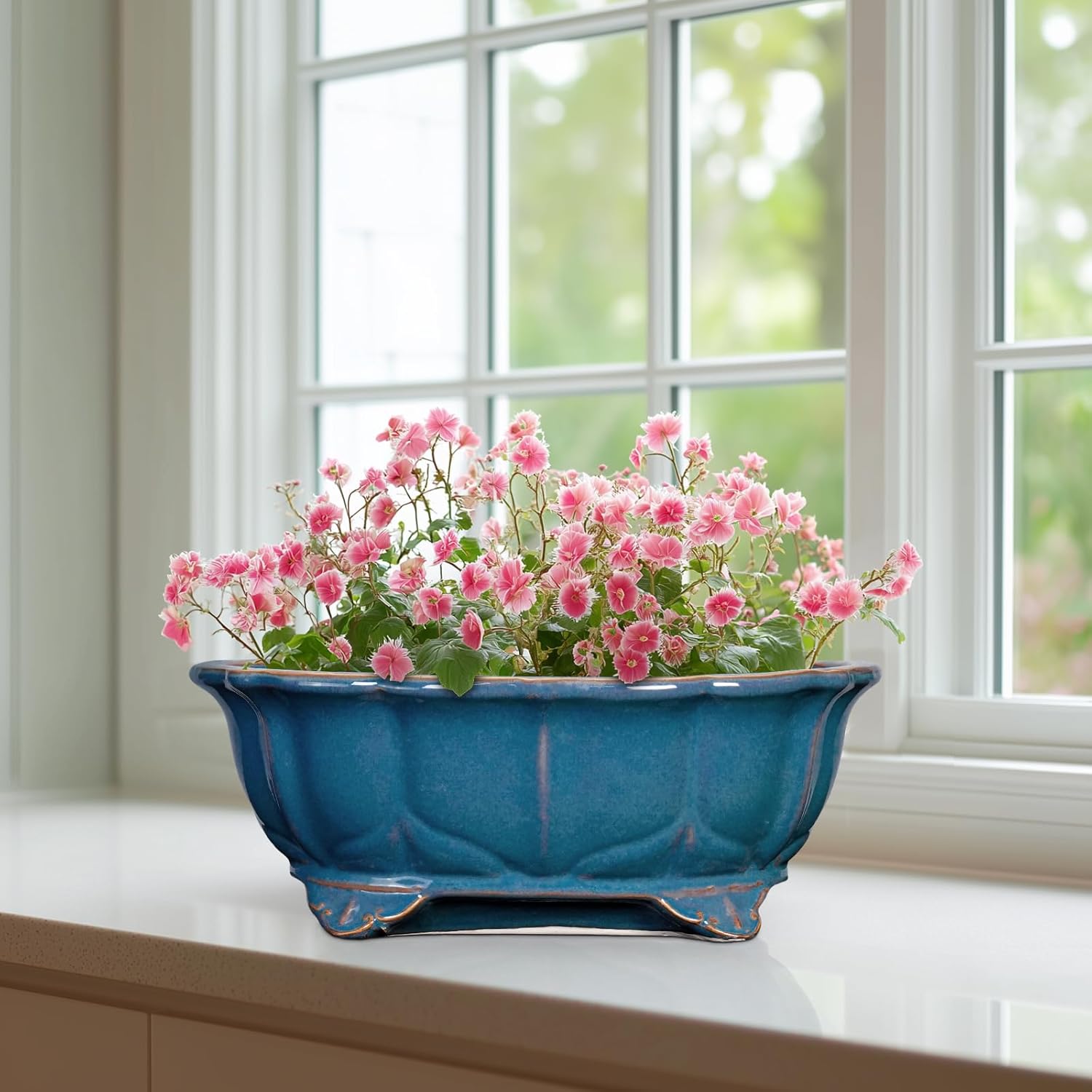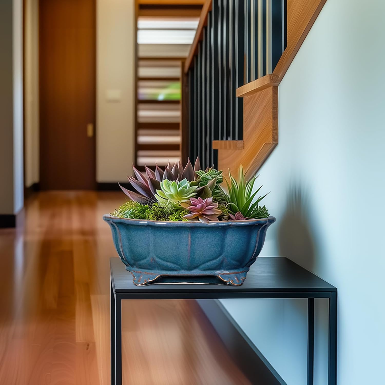 - Planter Design: Featuring a beautiful blue reactive glaze finish and elegant rectangluar appearance, this bonsai pots combines practicality with beauty, suitable for table, desk, windowsill, shelves, living room, bedroom, bathroom, porch, study, office, patio, balcony, zen garden, any indoor or outdoor space
