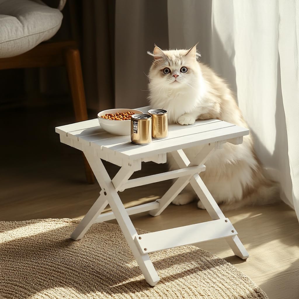 Outdoor Side Table, No Assembly Folding Wooden End Table for Outside or Indoor, Small Patio Tables for Camping, Pool, Bathroom, Backyard and Porch (White)