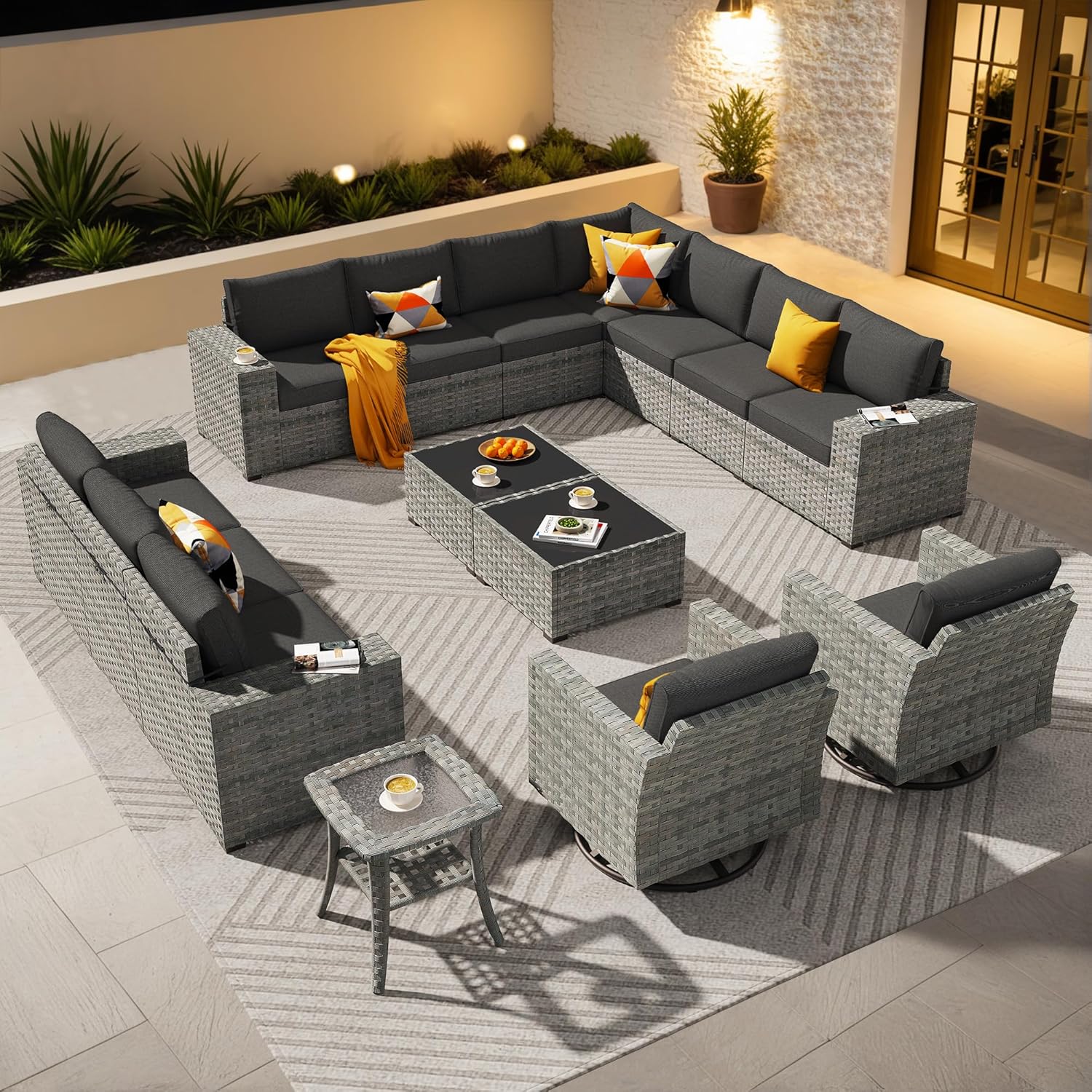 - Modular Combination: Outdoor sectional sofa set can be separated into 12 single seats, which can be freely combined with the included connecting clips to create the outdoor seating arrangement you want to fit into a variety of spaces.